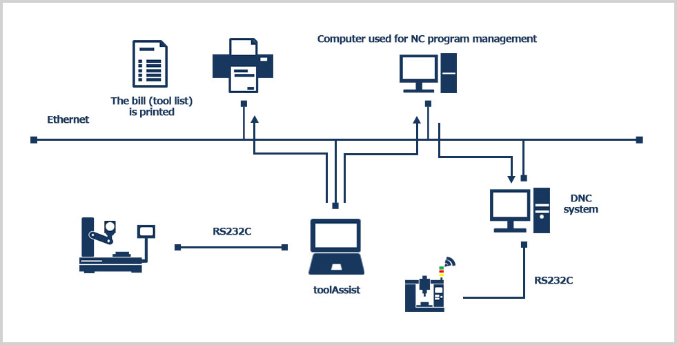 * The tool presetter is connected with the computer via RS-232C interface.